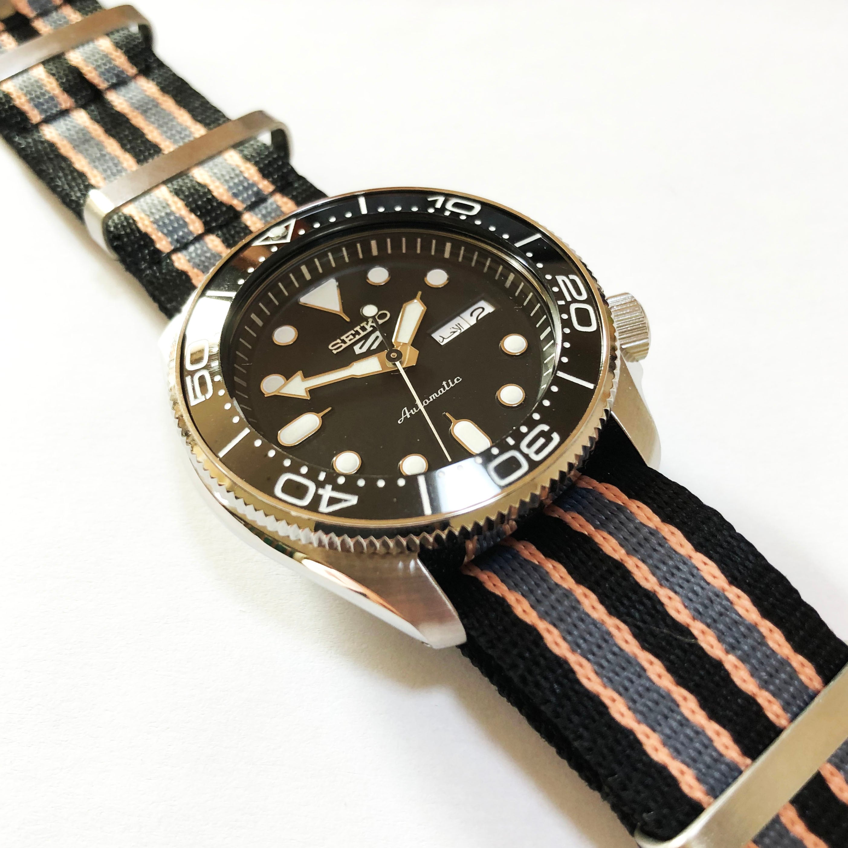 SEIKOダイバーズウオッチ、SKX007ブラックボーイ、SKX009ネイビーボーイ、SKX011オレンジボーイはもちろん、NEW Seiko 5 Sports SBSA##系、SRPD##系 など取付け幅22mmの時計に広く装着可能です。