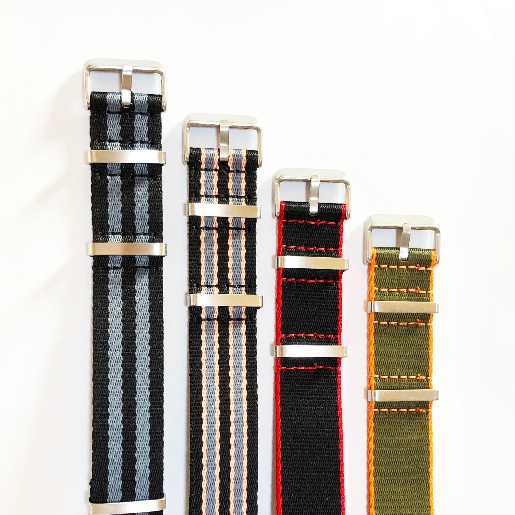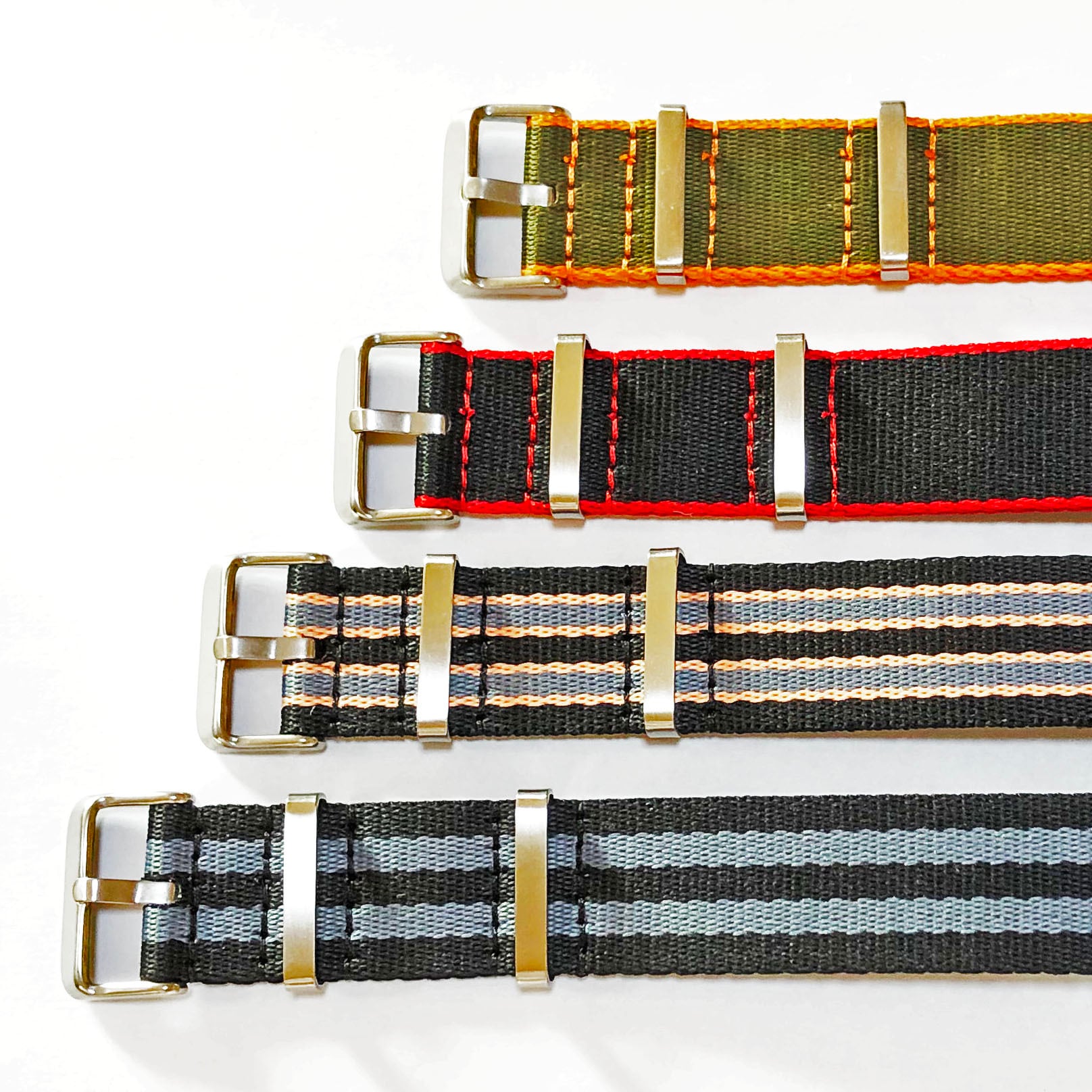 頑強なハードナイロンの生地をベースにマルチカラーで展開しているNATOストラップは、しっかりとした装着感に違わぬ強度を誇ります。