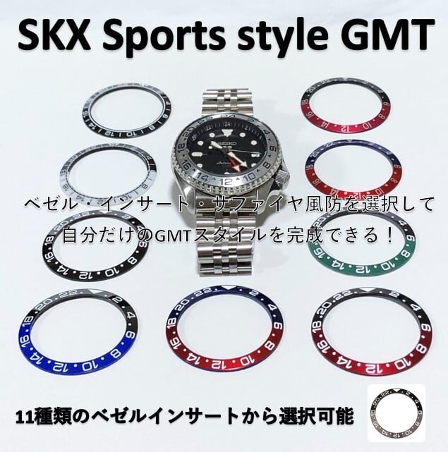 SKX Sports Style GMT カスタム企画 選べる11種類のGMTインサート サファイヤダブルドーム風防 GMT機能 自動巻 10気圧防水
