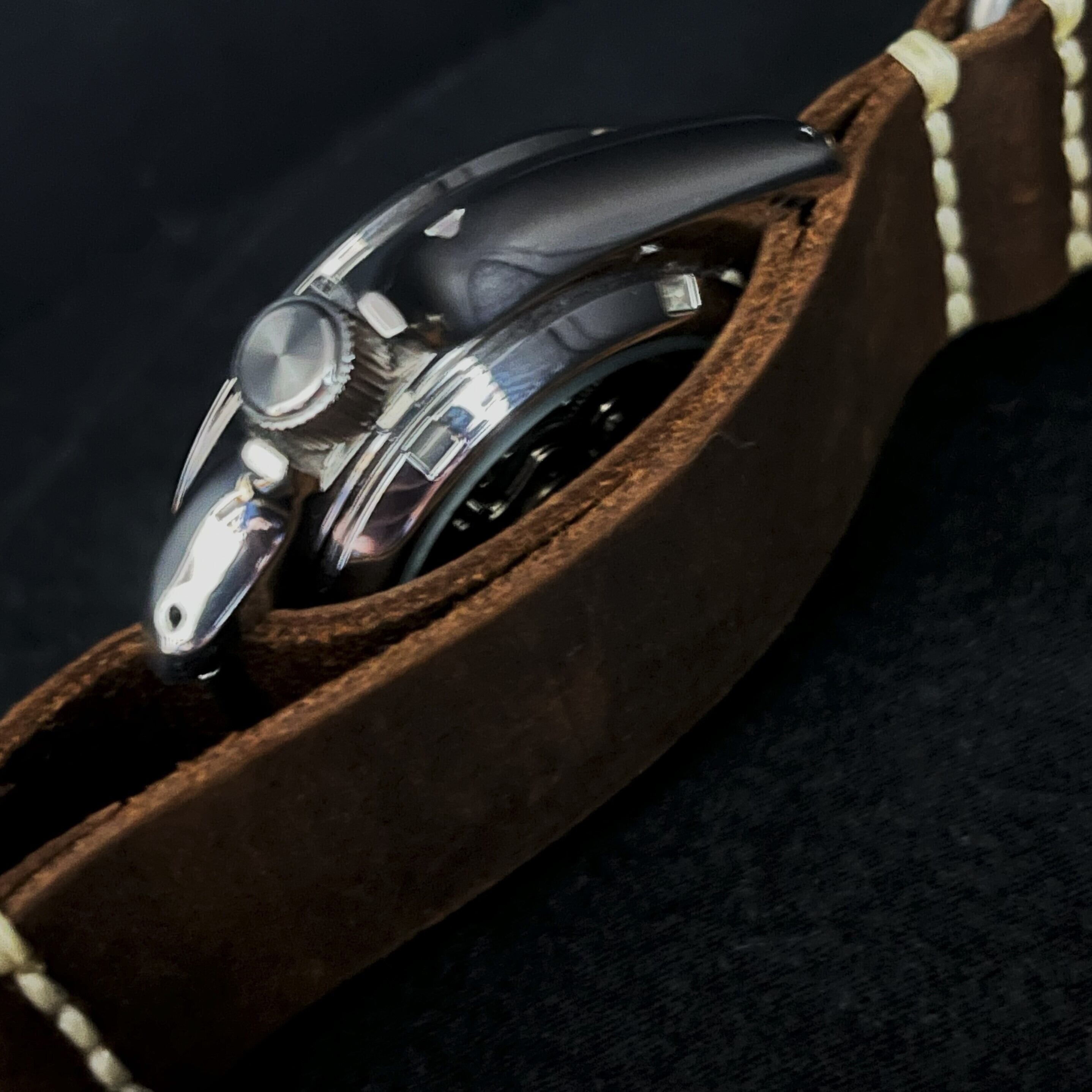 又、本革製のベルトを選択しているので、馴染むほどにクラシック調に経年変化を楽しめる一面も持ち合わせたカスタム企画です。