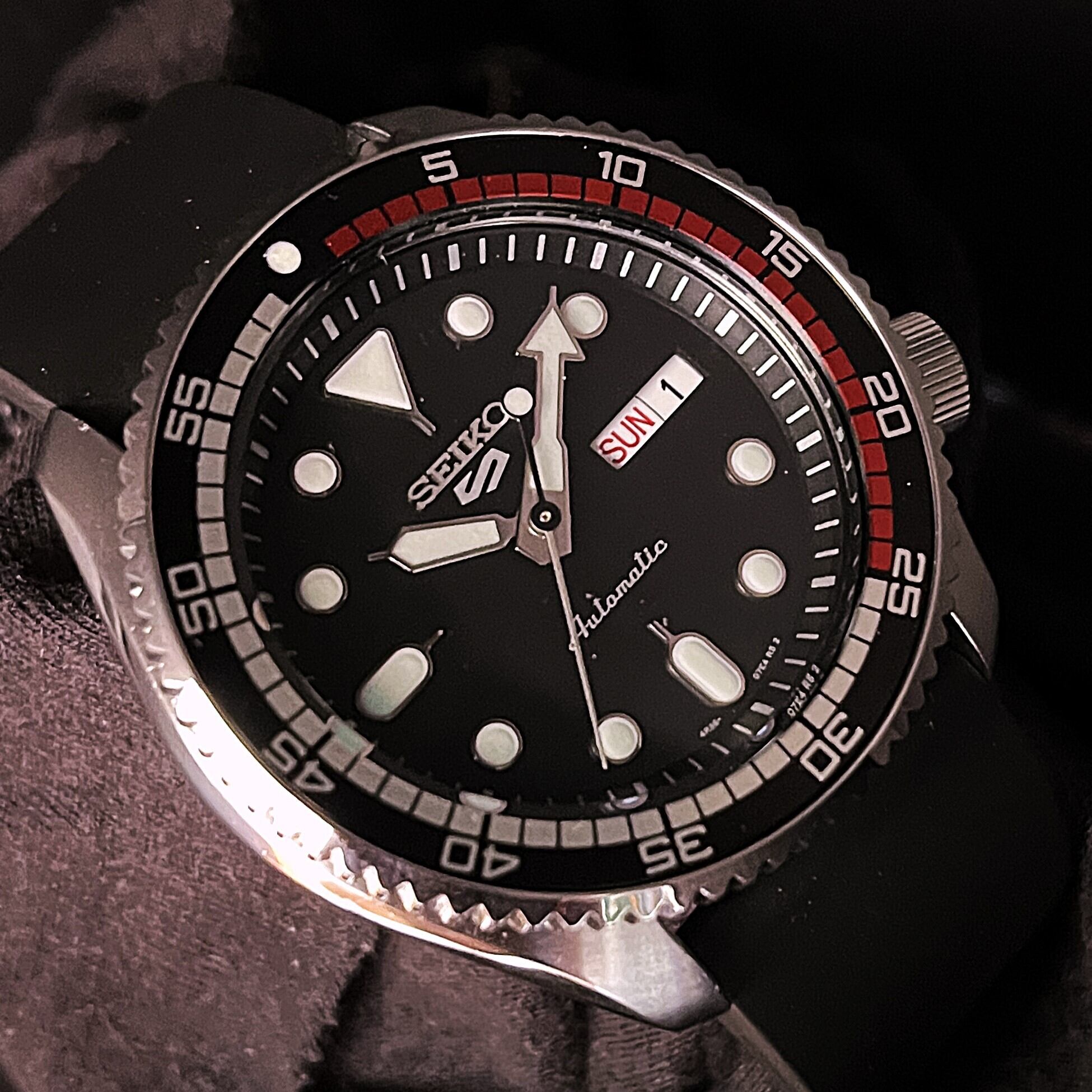SEIKO 5 SPORTSブラックフェイスをベースに作成するカスタムのご提案です。